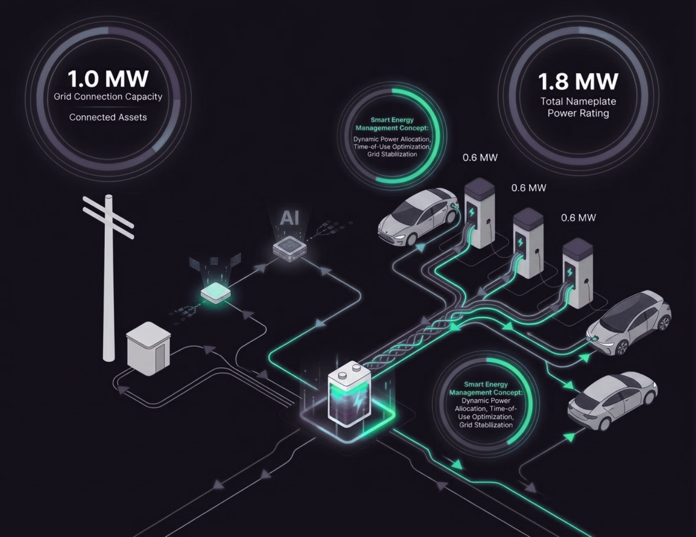 Smart charging with fleet readiness guarantees. Unlock DNO flexibility and wholesale revenue from your depot. Modelled revenue estimates available on request.